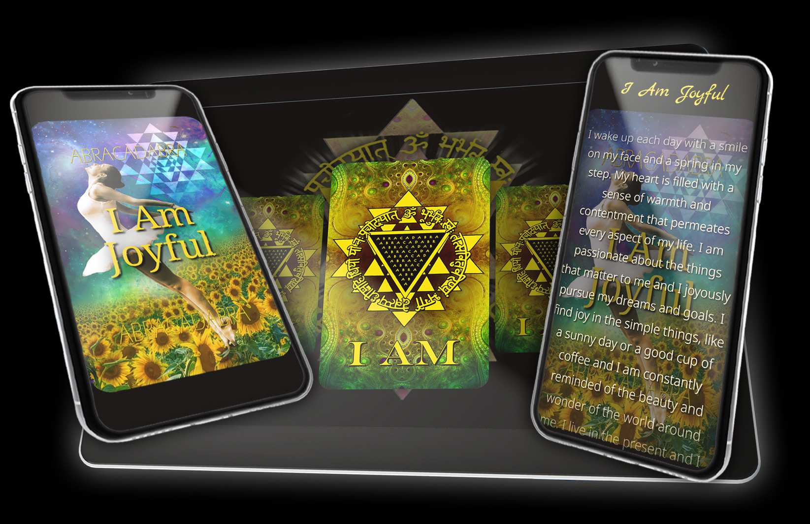 Transform your daily routine into a powerful manifestation practice. The Manifestation Deck™ app puts 60 beautifully illustrated cards at your fingertips - each one embedded with sacred geometry, affirmations, and ancient wisdom designed to shift your mindset, raise your vibration, and align you with your deepest intentions. Whether you're starting your morning with a single card pull or diving into a guided meditation, the app helps you stay connected to your purpose throughout the day. Built around four sacred symbols - Abracadabra, Sri Yantra, Gayatri Mantra, and I AM - the Manifestation Deck bridges timeless spiritual traditions with modern daily practice.